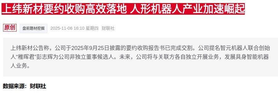 最近上纬新材完成要约收购的消息刷屏了朋友圈。智元恒岳拿下58.6%股权,还提名了稚晖君这样的技术大牛进董事会。看着机器人概念股蹭蹭往上涨,我朋友圈里不少老股民却在唉声叹气——又错过一波行情。